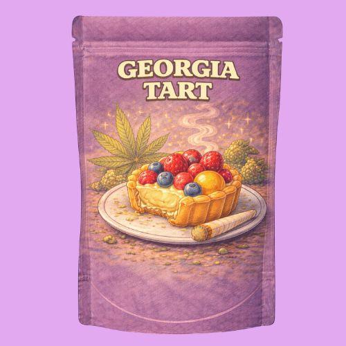 Georgia Tart is a flavorful hybrid strain bursting with sweet peach and sour citrus notes , delivering a smooth smoke and a mellow, balanced high. With THC levels between 24–26% , it offers a gentle cerebral lift followed by a soothing body buzz —perfect for easing into a calm, focused state without heavy sedation. Its aromatic profile and well-rounded effects make Georgia Tart a go-to for anytime relaxation with a twist of fruit-forward flair.